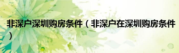 关于非深户深圳购房条件,非深户在深圳购房条件这个很多人还不知道,今天菲菲来为大家解答以上的问题,现在让我们一起来看看吧!