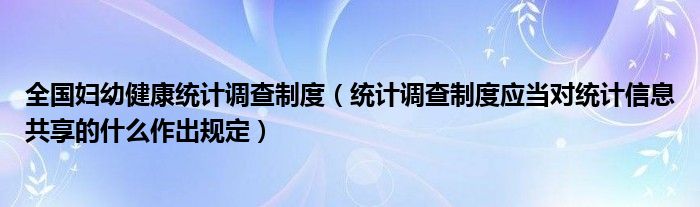 全国妇幼健康统计调查制度(统计调查制度应当对统计信息共享的什么作出规定)