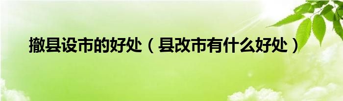 关于撤县设市的好处,县改市有什么好处这个很多人还不知道,今天菲菲来为大家解答以上的问题,现在让我们一起来看看吧!