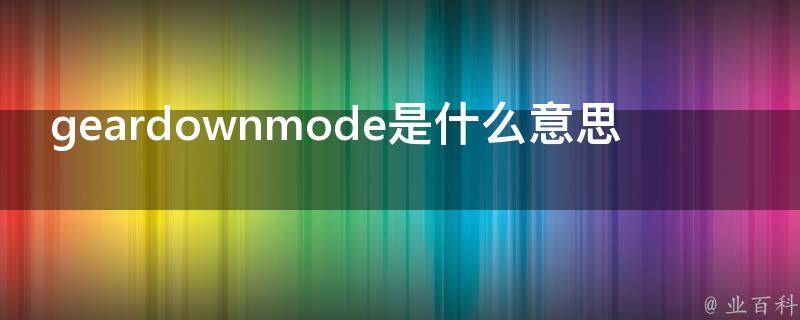 geardownmode的意思是减速模式。减速模式是一种调整设备工作模式的功能,可以用于降低设备的速度和功耗,适用于一些需要精细控制和低功耗的场景。在某些情况下,如需要更高的速度和性能时,关闭减速模式可能更合适。
