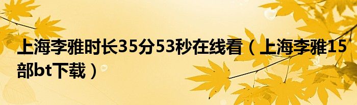 关于上海李雅时长35分53秒在线看,上海李雅15部bt下载这个很多人还不知道,今天菲菲来为大家解答以上的问题,现在让我们一起来看看吧!