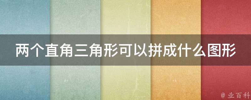 两个直角三角形可以拼成矩形(长方形)、平行四边形、等腰三角形和其它不规整图形。直角三角形是一个几何图形,是有一个角为直角的三角形,有普通的直角三角形和等腰直角三角形两种。两个完全一样的直角三角形,当以斜边为公共边时可拼成长方形。