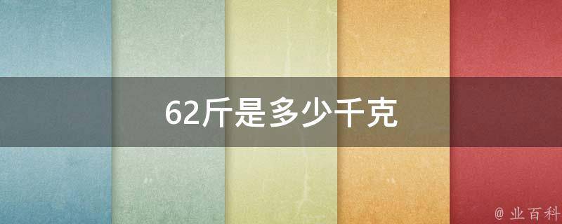 62斤是31千克。斤是中国传统的重量单位,它的换算比较简单,1斤等于0.5千克。因此,如果想要将斤转换成千克,只需要将斤数乘以0.5即可。市制一斤为十两(旧制一斤为十六两),两斤等于一公斤。