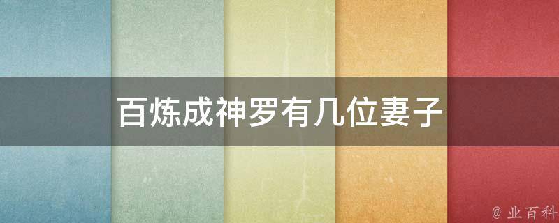 百炼成神罗有8个妻子,分别是宁雨蝶、溪幼琴、熏、苏灵韵、含流苏、牧凝、凌霜、凤歌。《百炼成神》是恩赐解脱所著的一部玄幻大作,于在2014年开始连载在安卓读书。2017年百炼成神音频版上线蜻蜓FM。