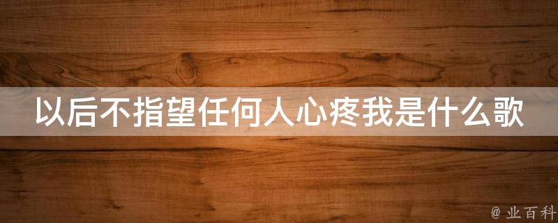 以后不指望任何人心疼我是歌曲《习惯一个人生活》,作者是叶筱萱。部分歌词是:我不指望谁来心疼我,只希望别再来伤害我,现在我已习惯一个人生活,这样其实也挺好的,我不指望有人能爱我,只希望别再来打扰我,这所谓的爱情我也尝试过。