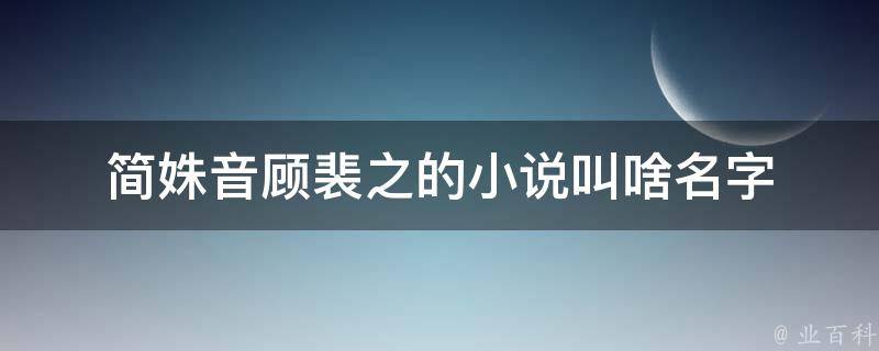 简姝音顾裴之的小说就叫《简姝音顾裴之》。讲述了简姝音在一次朋友聚会中遇到了顾裴之,两人在短暂的相处中产生了不可抑制的吸引力的故事。小说可以在必去阁、来书吧、吞噬小说网、阅读书屋等平台进行阅读。
