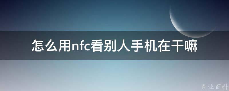 不能用nfc看别人手机在干嘛。NFC是一种短距离的高频无线通信技术,允许电子设备通过靠近相互交换信息。但是,NFC只能用于在两个设备之间进行简单的数据传输,例如分享照片、网页、联系人或音乐。它并不能用来查看其他设备的屏幕内容或应用程序活动。