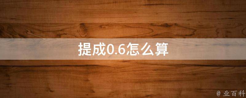 提成0.6的计算方法:如果销售额为1000元,那么提成就是1000元*0.6%=0.6元。如果销售额为1万元,那么提成就是1万元*0.6%=60元。提成0.6就是千分之六,根据销售额的多少,提成金额也会有所不同。