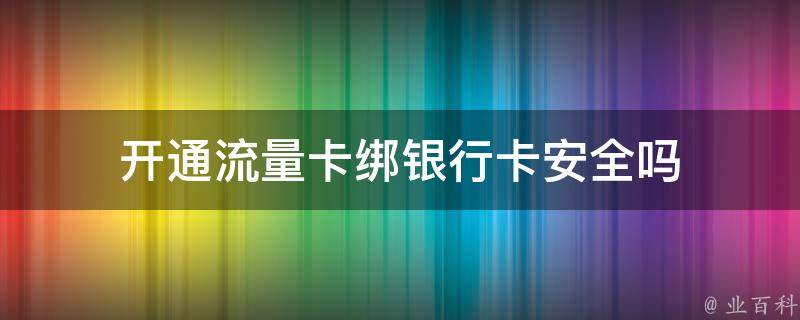 开通流量卡绑银行卡不安全。绑定银行卡需要考虑到安全性问题,如果绑定不当,会存在一定的风险,可以通过密码、电话验证、指纹等多重身份认证方式来确保安全性,确保用户的信息不被泄露。注意要考虑到各个银行的不同政策和规定。