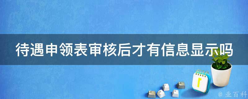 待遇申领表审核后才有信息显示。失业金审核通过了,1-2个工作日后才能查到个人待遇明细。失业金审核通过后,人社部门需要进行一系列的操作和审核,包括核算待遇金额、制定发放计划、审核个人信息等,这些操作需要一定的时间才能完成。