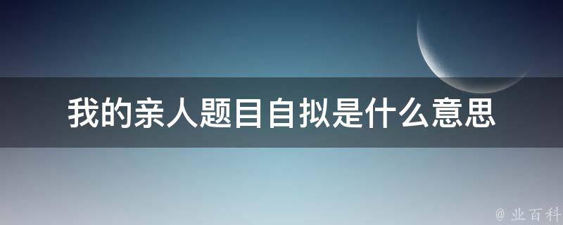 我的亲人题目自拟的意思是写自己的一位亲人,并根据文章的内容取个相关的题目,这句话通常用在语文写作的题目中。自拟题目可让我们养成独立思考的习惯,不再依赖别人给予的思路,从而更有创意。自拟题目还能展示个人的独特思想,让读者更好地了解作者的观点。