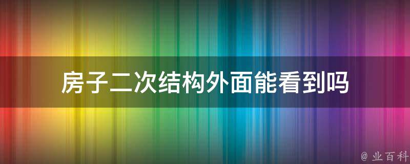 房子二次结构外面不能看到。二次结构通常指在框架、剪力墙、框剪工程中的一些非承重墙体的结构,如构造柱、过梁等。这些结构通常在房屋主体结构完成之后进行施工,并且在房屋交付之前完成。因此,从外部通常无法看到这些二次结构。