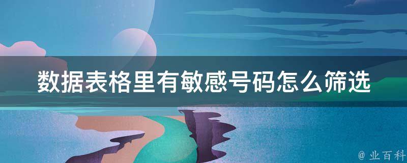 数据表格里有敏感号码可以使用Excel的条件格式和函数来筛选。假设敏感号码是手机号码,可以在数据表格中添加一列,命名为敏感号码,然后使用函数将手机号码提取出来,再使用条件格式将敏感号码标记出来。