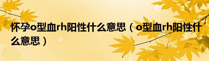 大家好,乐天来为大家解答以下的问题,怀孕o型血rh阳性什么意思,o型血rh阳性什么意思很多人还不知道,现在让我们一起来看看吧!