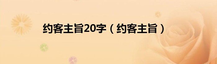 大家好,小联来为大家解答以上的问题。约客主旨20字,约客主旨这个很多人还不知道,现在让我们一起来看看吧!