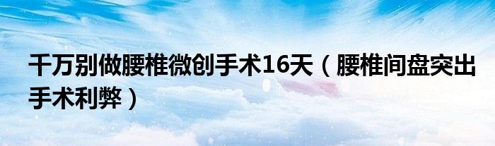 大家好,乐天来为大家解答以下的问题,千万别做腰椎微创手术16天,腰椎间盘突出手术利弊很多人还不知道,现在让我们一起来看看吧!