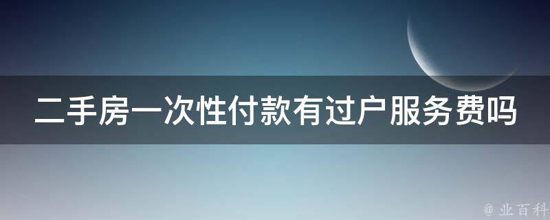 二手房一次性付款有过户服务费,包括契税、房屋产权登记费、交易费、营业税以及个人所得税等费用。过户需要提供资料主要有:房屋所有权证、买卖双方身份证明、房屋出售方婚姻状况证明、房屋核档证明、买卖契约以及其他房屋登记机构认为有必要提供的资料等。