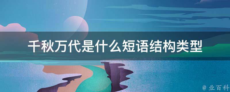 千秋万代是联合式短语,所谓联合短语就是要求组成短语的词词性要相同,结构须一致,各词联合起来共同表达一个完整的意思。千秋万代就是这样的短语,千秋和万代结构一致,都是编正短语,二者联合起来表达完整的意思,如:祖国江山千秋万代不变色。