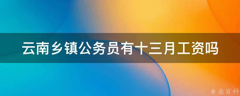 云南乡镇公务员有十三月工资。公务员的第13个月工资被称为年终一次性奖励,并且必须是年度考核为合格的人员才能拿到。这部分奖金会在1月份结束前发放,发放的金额以12月的工资为准。