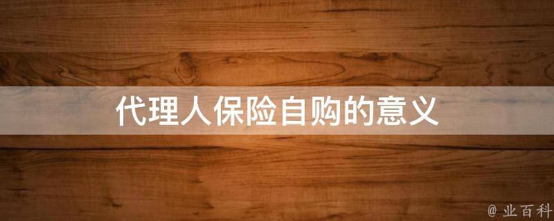 保险代理人自购保险的意义在于以自身需求出发,真正认可自家保险产品,同时也能更好地理解和感受保险的意义和功用。保险代理人自购保险并不是出于被强迫购买,也不是为了套利,而是真正出自本人意愿,认可自家保险产品。如果保险代理人连自家的保险产品都不认同,在和客户沟通中,很难令人信服。