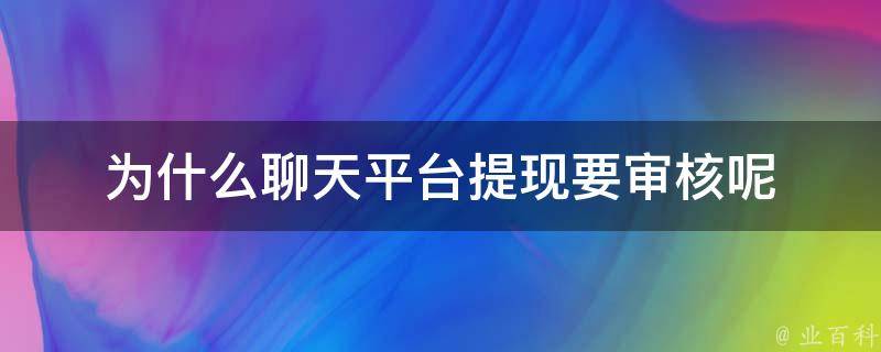 聊天平台提现要审核是因为用户之间的信息交流可能涉及到敏感信息,如个人信息、银行账户等。为了防止诈骗和保护用户的财产安全,聊天平台需要对提现申请进行审核,确保用户提供的信息真实可靠。