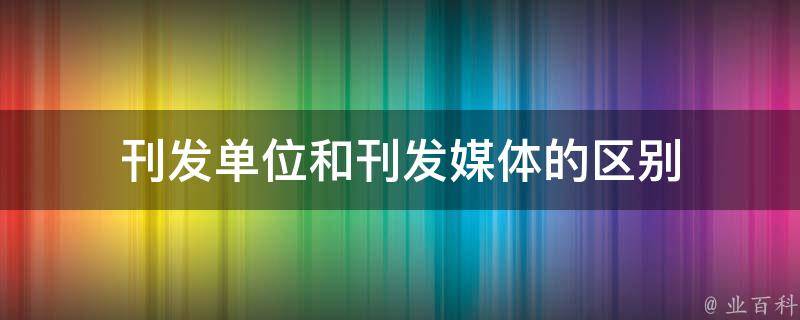 刊发单位和刊发媒体的区别是定义不同。刊发单位通常指的是具体的出版机构或公司,例如出版社、杂志社、报社等。这些机构通常有自己特定的出版计划和目标,根据这些计划和目标来选择和编辑稿件,并进行刊发。而刊发媒体是一个更广泛的概念,它包括所有可以发布和传播信息的媒体平台,例如报纸、杂志、电视、广播、互联网等。