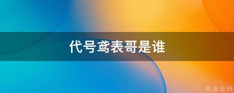 代号鸢表哥是谁