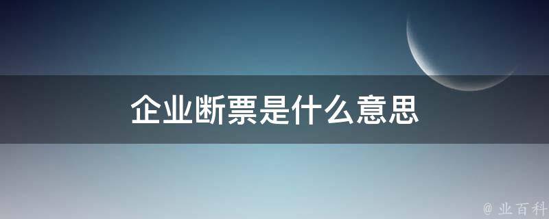 企业断票的意思是企业税务方面停票,是税务机关对企业欠税或其他不适行为的处理方法。断票,就是禁止企业领用发票。企业没有发票,销售业务就无法正常进行。断票断税对企业的信贷影响非常大,企业要避免出现断票这种情况。