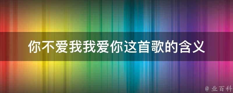 你不爱我我爱你这首歌表达了暗恋的无言的痛楚和对爱情的憧憬。《你不爱我我爱你》是邓丽君演唱的歌曲,收录在专辑《怀念歌曲精选No.1》中。歌词节选:你不爱我我却爱你,这并不稀奇,你的微笑,你的言语,是那样甜蜜,自从那一天,和你在街头相遇,我就喜欢你。
