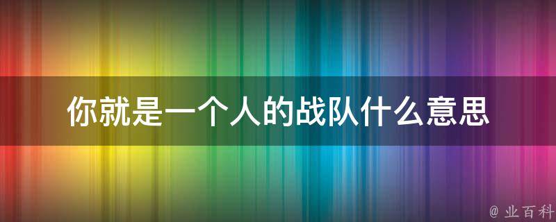 你就是一个人的战队意思是:你是一个人独立作战,没有与他人合作或者组成团队。这句话的含义是,你可能具有很强的独立性和自我能力,但同时也可能缺乏团队合作的能力或者不愿意与他人合作,更倾向于独自完成任务或者行动。