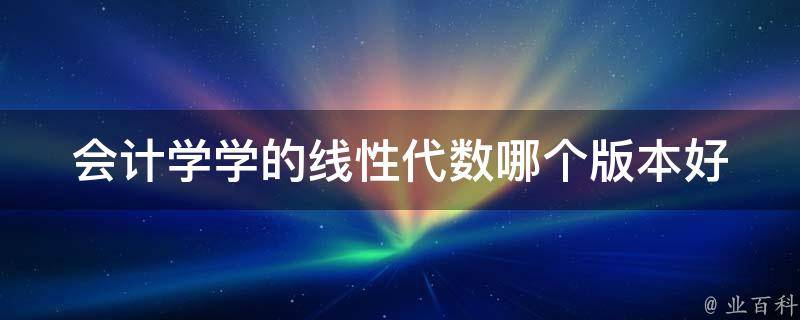 视情况而定。对于会计学专业的学生来说,学习线性代数的主要目的是为了解决实际工作中的问题,因此选择教材时应该注重其实用性和可读性。同时,还需要根据自己的学习能力和兴趣选择适合自己的教材。学习线性代数可以参考的版本有很多,如清华大学出版社的《线性代数》(居余马等著)、科学出版社的《线性代数》(李乃华等著)等。