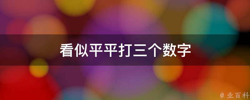 看似平平打三个数字是965,因为看有9画,似有6画,而平有5画,所以,看似平平打三个数字是965。在数字谐音中,0代表圆满、完美、无尽;1代表唯一、你、起点;2代表爱、两人世界;3代表想念、生命、生活;4代表是的、时时;5代表我、无,也可以理解为不分你我;6代表顺利、溜达;9代表久、就、求。