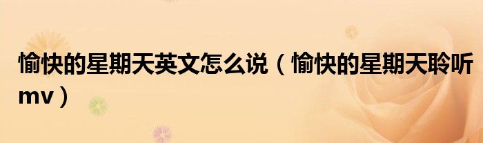大家好,我是小科,我来为大家解答以上问题。愉快的星期天英文怎么说,愉快的星期天聆听mv很多人还不知道,现在让我们一起来看看吧!