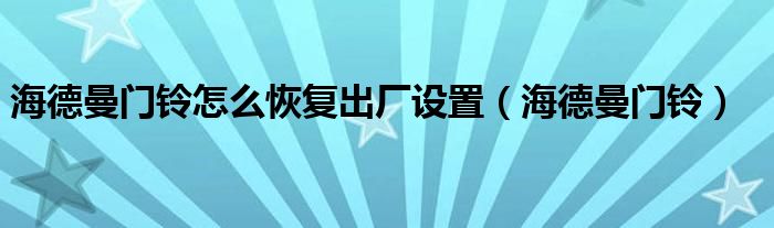 今天小饼为大家解答以下问题,关于海德曼门铃怎么恢复出厂设置,海德曼门铃很多人还不知道,现在让我们一起来看看吧!