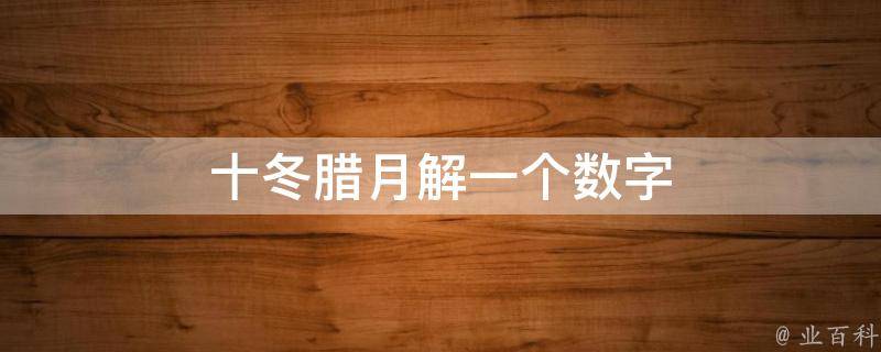十冬腊月解一个数字是十,因为十冬腊月是指农历十月、十一(冬月)、十二月(腊月),这些季节都包含了十这个数字,所以,十冬腊月解一个数字是十。十组词有十字路口、一五一十、十全十美、十指连心、十年、一暴十寒、五光十色、神气十足等。