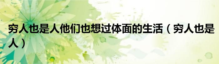 大家好,我是小科,我来为大家解答以上问题。穷人也是人他们也想过体面的生活,穷人也是人很多人还不知道,现在让我们一起来看看吧!