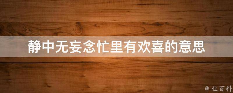 静中无妄念忙里有欢喜的意思是独处时不胡思乱想,忙碌也满心欢喜,以平和的心态面对生活中的种种状态。这句话告诉我们,在生活的喧嚣和繁忙之中,我们要学会保持内心的宁静和从容,同时也要寻找到欢乐和快乐的源泉。这既是对人生的一种态度,也是我们度过四季、度过自己的一种方法。