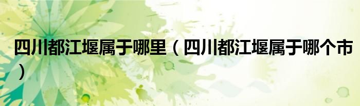 大家好,小联来为大家解答以上的问题。四川都江堰属于哪里,四川都江堰属于哪个市这个很多人还不知道,现在让我们一起来看看吧!