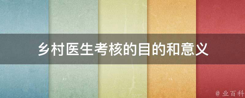 乡村医生考核的目的和意义是拓宽乡村医生的知识面,推进卫生医疗改革,提高农村基层医疗服务水平,同时也对乡村医生进行能力评估以及制定相关计划提供基础。考试内容包含乡村医生健康保障政策、医疗事故处理办法、职业道德规范等方面内容。