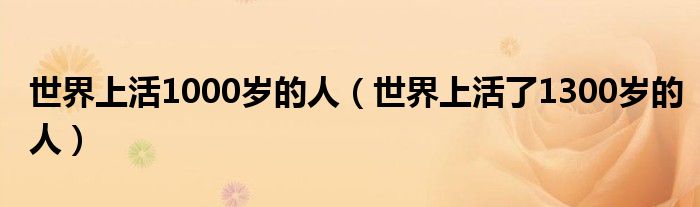 世界上活1000岁的人(世界上活了1300岁的人)