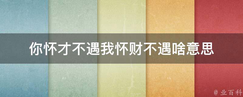 你怀才不遇我怀财不遇意思是:对方有能力但无法得到应有的认可或发挥,这种说法是对对方的工作能力或价值的一种评价,而当说我怀财不遇时,它指的是拥有大量财富却无法得到相应回报或享受,意味着认为自己遭遇了经济上的困境或不如预期的商业结果。