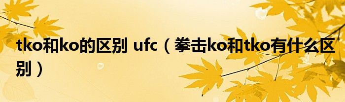 大家好,小夏来为大家讲解下。tko和ko的区别 ufc,拳击ko和tko有什么区别很多人还不知道,现在让我们一起来看看吧!