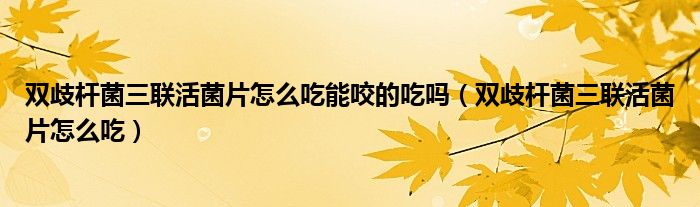 大家好,乐天来为大家解答以下的问题,双歧杆菌三联活菌片怎么吃能咬的吃吗,双歧杆菌三联活菌片怎么吃很多人还不知道,现在让我们一起来看看吧!