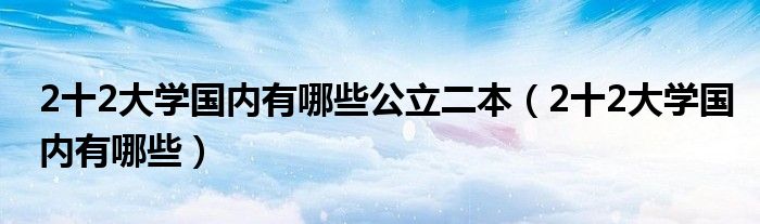 大家好,我是小科,我来为大家解答以上问题。2十2大学国内有哪些公立二本,2十2大学国内有哪些很多人还不知道,现在让我们一起来看看吧!