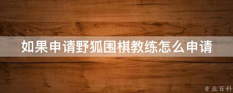 4、提交教练认证申请,并等待审核。审核通过后,将成为野狐围棋的围棋教练。