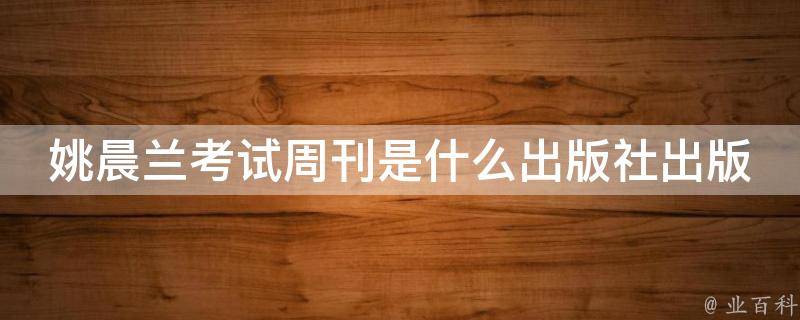 姚晨兰考试周刊是长春出版社。根据查询中国期刊采编中心显示,考试周刊是经国家新闻出版总署批准、吉林省期刊协会主管、长春出版社主办、国家教育部有关部门重点指导的教育类优秀期刊和教学类名刊,每周出版一期,全年53期。