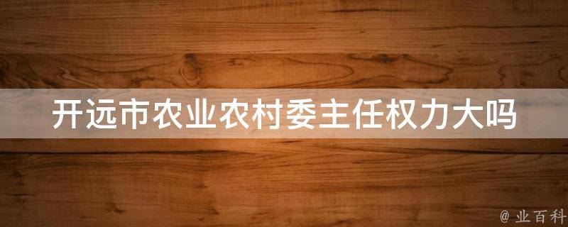 开远市农业农村委主任权力大。开远市农业农村委主任的职责:贯彻落实中央和省、市有关农业和农村工作的方针政策,牵头指导协调全市三农工作,提出郊县发展有关政策建议。牵头负责全市统筹城乡一体化发展工作,提出城乡统筹发展思路、重点项目和政策措施,组织督查考核。