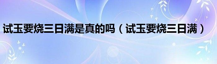 大家好,我是小科,我来为大家解答以上问题。试玉要烧三日满是真的吗,试玉要烧三日满很多人还不知道,现在让我们一起来看看吧!