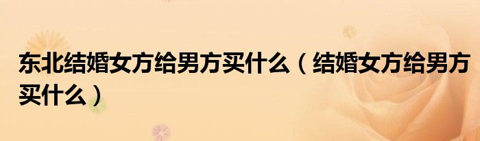 大家好,我是小科,我来为大家解答以上问题。东北结婚女方给男方买什么,结婚女方给男方买什么很多人还不知道,现在让我们一起来看看吧!