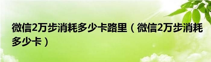 大家好,小夏来为大家讲解下。微信2万步消耗多少卡路里,微信2万步消耗多少卡很多人还不知道,现在让我们一起来看看吧!